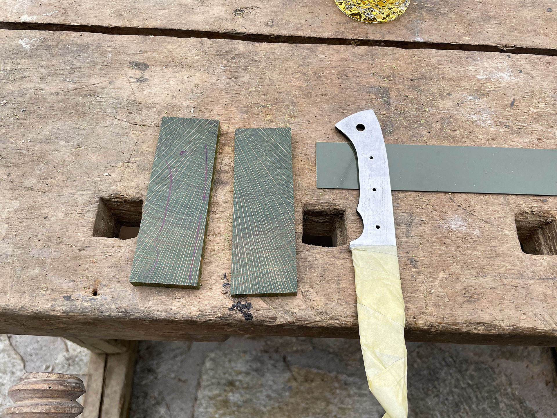 Damaszenerstahl, japanischer Verbundstahl, natürliche Griffmaterialien.